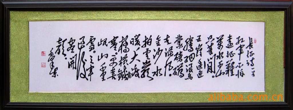 产品介绍∶彩绒立体书画是在彩色绒毛板上手工直接书写,字体全部绒毛复盖,四周用豪华材料装裱,黄金属条镶边,使用深棕色高档木框制作出的高挡豪华室内装饰品,不需制版,不需雕刻和粘接,便可将古代.近代.现代名流佳作克隆再现,产品典雅庄重漂亮,立体感强,(画面凸出版面0.5-1.0公分,约一手指高)全部彩绒覆盖,该产品国内独创,国家知识产权局己受理发明专利,多家新闻单位予以报导,产品具有色彩鲜艳,手感柔和,典雅漂亮,立体感强等特点,广泛适用于宾馆.酒店.会仪室和居室内豪华装饰,也是馈赠礼品最佳选择,凡目睹此画者,均有百看不厌,.百摸不倦之美感,产品在部分省市上市后,深受广大消费者赞誉和青睐.公司现生产彩绒立体书画,镀金立体书画,仿瓷立体书画,水晶立体书画,夜晶立体书画,彩色浮雕立体壁画六个系列,一百多个品种,有横幅.条幅.中堂.四扇屏多种规格,多种字体,多种色彩,多种内容的立体书.画,并可按客户不同要求定做,我们热诚欢迎有识之士加盟和以多种方式的合作