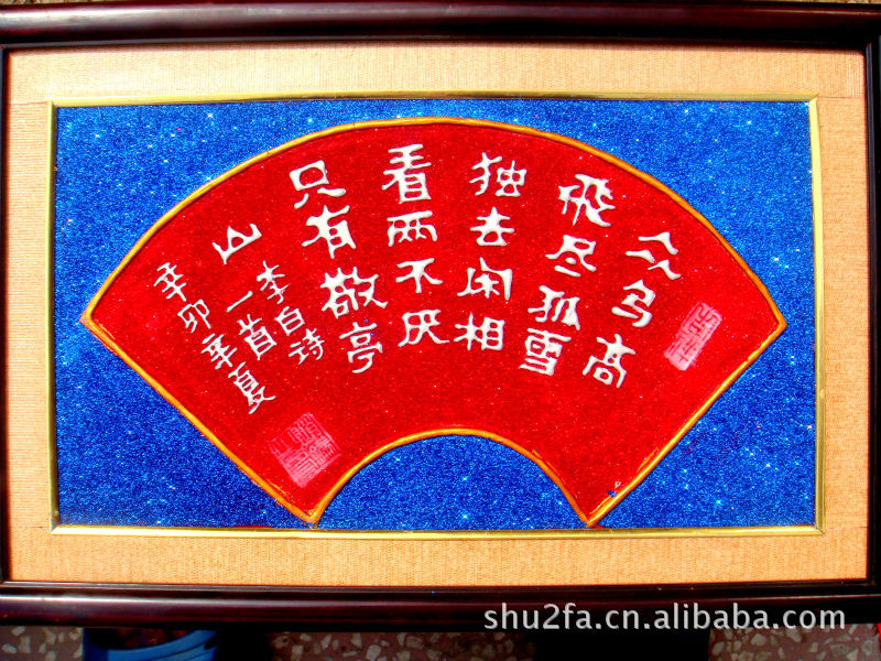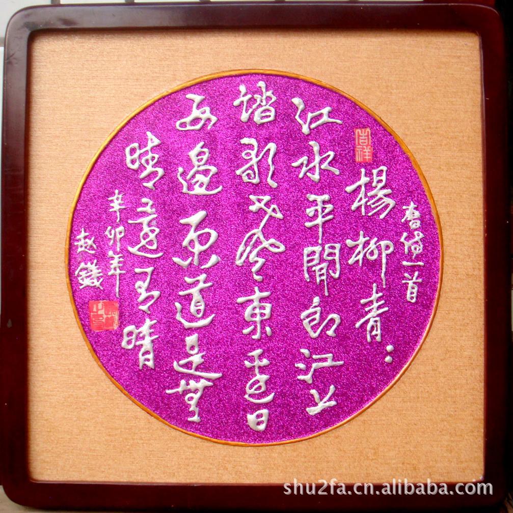 公司现生产彩绒立体书画,镀金立体书画.仿瓷立体书画.夜晶立体书画四个系列,100多个品种,多种规格,多种色彩,真.草.隶.篆齐全.名家作品繁多横幅.条幅.四扇屏.扇面形应有尽有..欲了解产品祥情.登陆公司网站查看,网頁有产品介绍,祥细资料和多幅产品图片供您欣賞,公司现以优惠条件诚征地区独家代理商,欢迎来电来函咨询,如对产品感兴趣请在留言栏中留言.