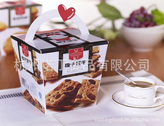400g提子饼干 品牌:诺丁 产品类别:饼干 品种:韧性饼干 原产地:浙江省杭州市 条码:6941888900874 规格:400g*12盒 净重:400g 保质期:十二个月 生产厂家:杭州诺丁食品有限公司 储藏方法:存放于阴凉干燥处,避免阳光直射,开封后请立即食用。 原料与配料:小麦粉、精炼植物油、白砂糖、提子干、无水酥油、麦芽糖浆、玉米淀粉、食用盐、食品添加剂(碳酸氢钠、碳酸氢铵、焦糖色素、焦亚硫酸钠)、食用香精。 产品标准号:GB/T20980 生产许可证编号QS:QS3301 0801 1484 价格:115.2元/箱 起订量:6箱