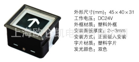 此款双色按钮,受到国内很多电梯厂的欢迎。电压24V,发光色可选,常规色:外圈橙光,内圈蓝光或红光,共14个发光管,此款为高级按钮,质量很好,采用进口B3F系列欧姆龙开关,10万次按键测试,质量可靠,3包服务。开孔安装尺寸为42.4mm*37.4mm发光颜色可双色。