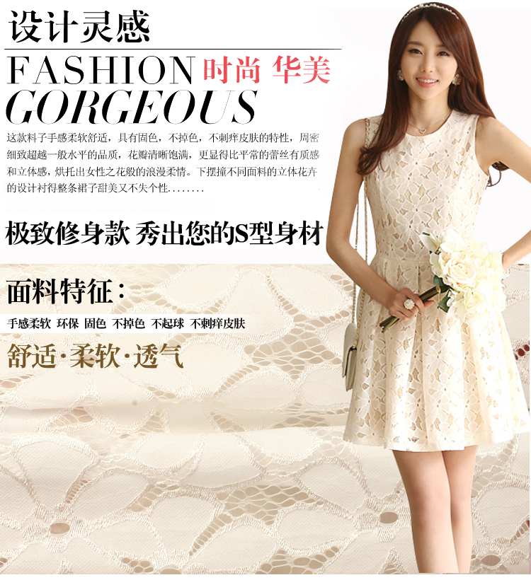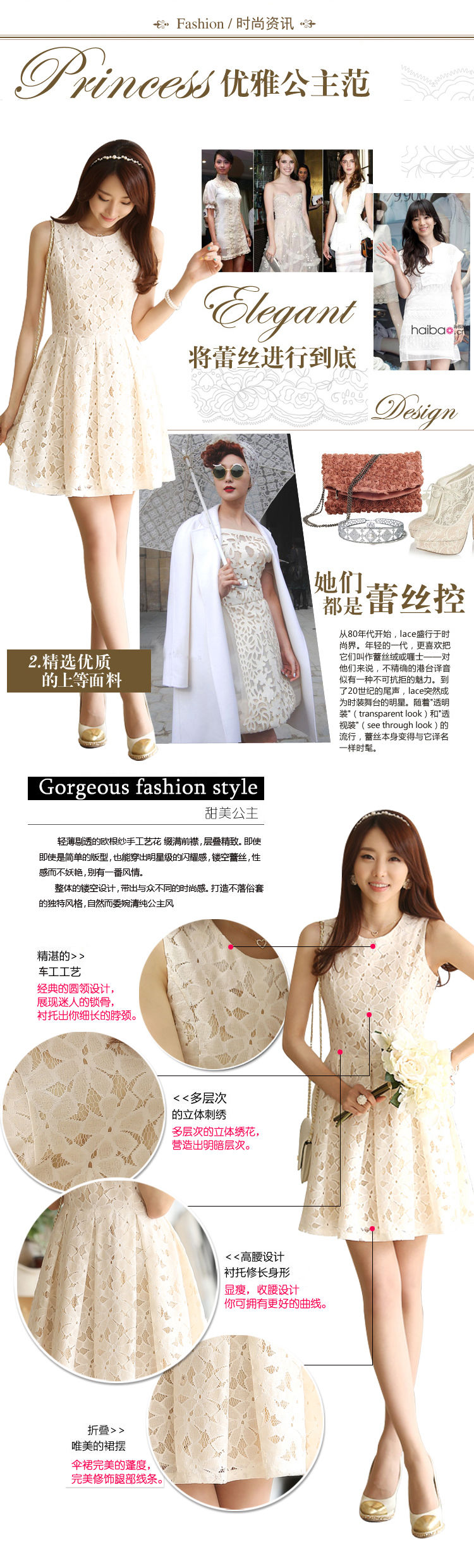 2014春夏装新款修身显瘦蕾丝镂空绣花公主裙背心裙刺绣连衣裙韩版