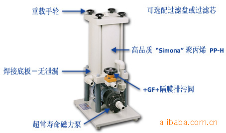 过滤设备主体材质有橡胶衬里、 PP 、PVC 、CPVC 以及不锈钢可选。