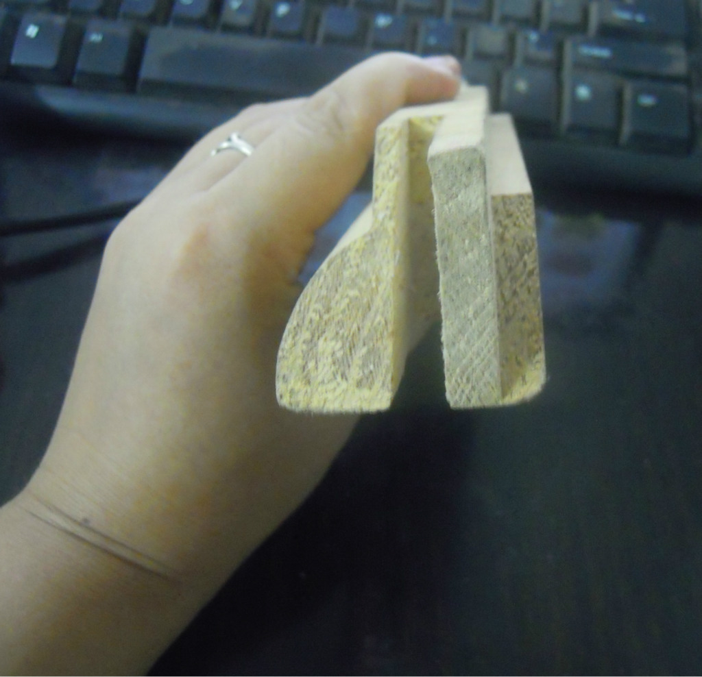 首先,拿起两个开好榫头的框条,将榫头靠近