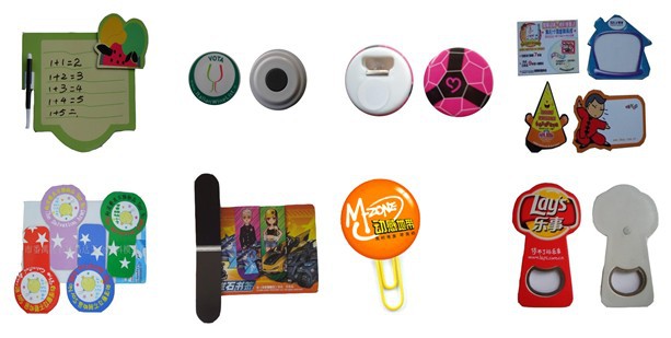 采用背面0.5-1.0MM厚软胶磁铁加正面精美彩色印刷过光胶(或哑胶)制成,可将其贴在冰箱等任何铁质物体上。并可按照客户要求制作相应形状及LOGO。袖珍实用,价格低廉。是促销赠品之最佳选择,热忱欢迎国内外新老客户随时来电来函垂询订购!