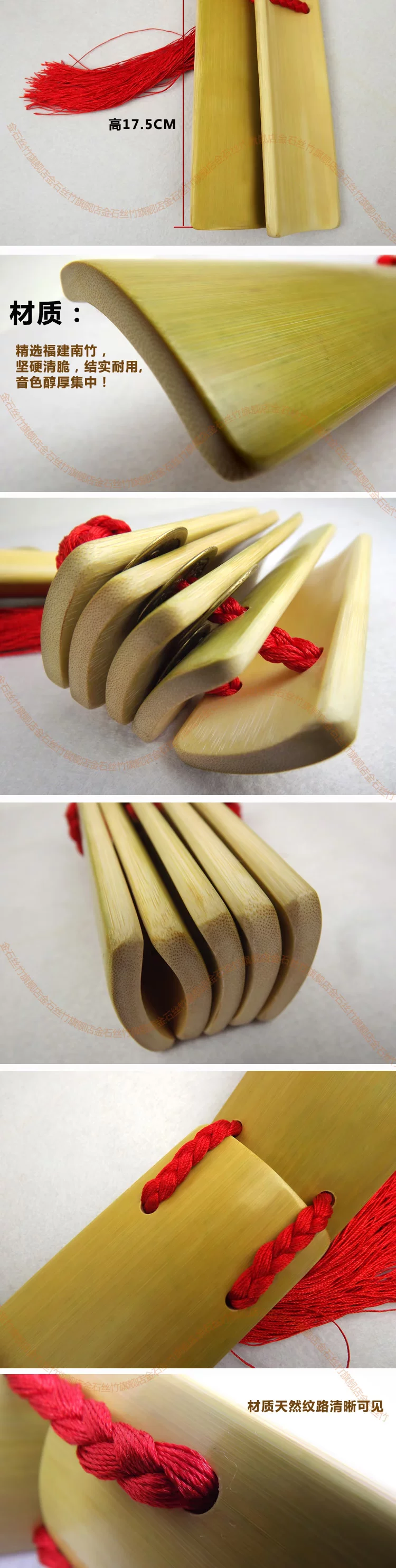 【优点】:中间为纯铜钱,音色更好,专业演奏级快板、音脆而不尖、具有穿透力、专业演奏级