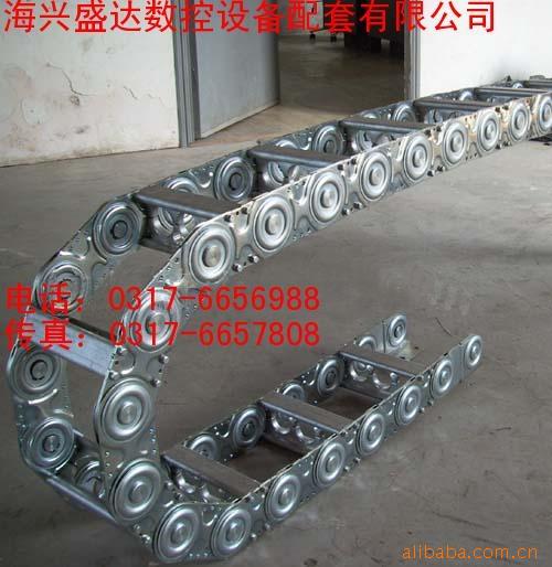 拖链用途和特点:1、拖链每节都能打开,便于安装和维修,运动的噪音低、耐磨、可高速运动。 2、拖链已被广泛应用于数控机床、电子设备、石材机械、玻璃机械、门窗机械、注塑机、机械手、起重运输设备、自动化仓库等。 3、拖链外形似坦克链,由众多单元链节组成,链节之间转动自如。 4、相同系列的拖链内高、外高、节距相同,拖链内高、弯曲半径R可有不同的选择。 5、单元链节由左右链板和上下盖板组成,拖链每节都能打开,装拆方便、不必穿线,打开盖板后即可把电缆、油管、气管等放入拖链内。