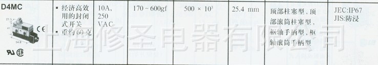 D4MC系列微动开关型号:D4MC-5000 D4MC-5020 D4MC-5040 D4MC-1000 D4MC-1020 D4MC-2000 D4MC-2020 D4MC-3030