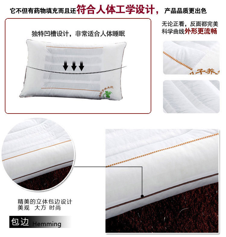 本款决明子枕头独特的凹槽保护颈椎外观设计根据人体工程学技术,按照人体脊柱曲