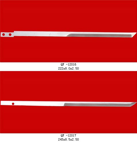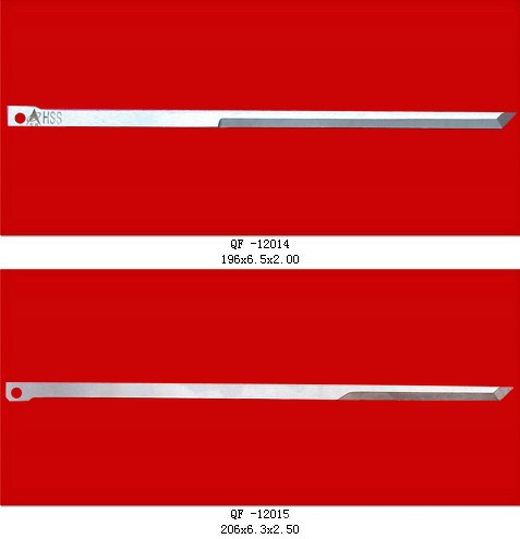 本公司的刀具,在意想不到的地方和我们的生活密切相关,譬如:标签纸的冲裁刀,印相纸的切断刀,轮胎的花纹刀,制火材,筷子用刀,制铅笔用切光刀,各种巧克力,奶糖的切断刀,以及食品罐头用刀,还有从烟叶到卷烟过程中的各种刀具.选料:9CrSi,Cr12MoV,W6MO5Cr4V2,W18Cr4V,3Cr12,4Cr14等