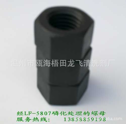 | LF-5807高温锌钙系耐蚀磷化液 应用说明 本品适用于钢铁表面处理,采用浸渍法,处理形成的致密的皮膜耐蚀性强、与涂膜的附着力好,是优良的防锈基体及涂装底层,广泛应用于泵阀、汽配、机械零件等表面的耐蚀防锈处理。磷化后的工件既可用作涂装前的磷化基底,也可配合LF系列防锈剂(如LF-628、618、638、658等)或封闭剂(如LF-668、688等)作为产品终处理;处理槽最好用不锈钢制品,碳钢寿命短。热交换器用SUS316不锈钢。加热管安在处理槽的侧面。为防止沉淀物上浮,故不宜从槽的底部加热。 主要特点 ●本品配槽比例低、磷化膜上膜快,操作范围宽,且可以循环使用且使用寿命长,综合成本低, ●使用本品处理的钢铁表面的磷化膜致密且耐蚀性比较强,增强了基体与涂层的结合力。 ●本品不含毒性物质,不产生有害气体,劳保环保好。 → | 干燥 | 涂装处理 | → | LF-628脱水防锈油处理 | → | 干燥 | LF系列防锈剂 |