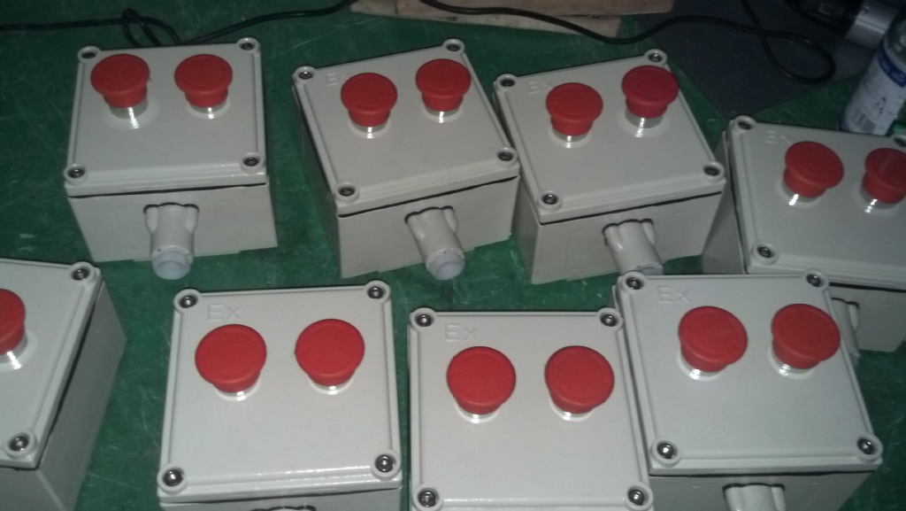 防爆操作柱外壳采用ZL102铸铝合金外壳,表面高压静电喷塑,配不锈钢外露紧固件,外形美观. 内装万能转换开关、按钮、电流表、(可按用户要求装其他仪表)、指示灯 可根据要求特制 电流表量程由用户指定. . 钢管或电缆布线均可. 产品出厂铭牌上只体现总单元内容,各分单元代号为订货参考. 符合GB3836-2000,IEC60079标准要求.