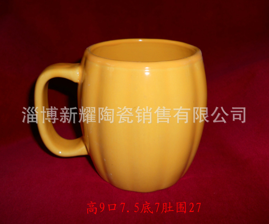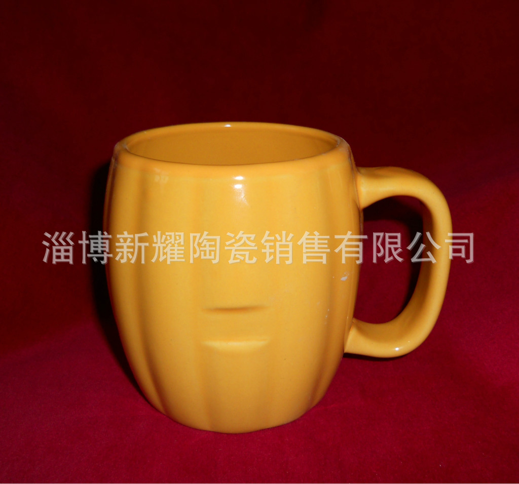 淄博创意彩色马克杯厂家供应色釉大肚马克杯,鼓型马克杯,南瓜杯