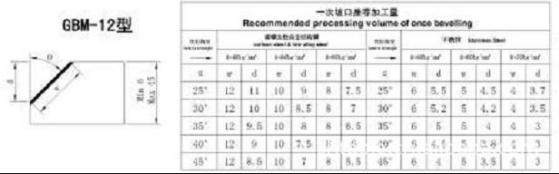 GBM-12C automatic moving steel plate bevelingmachine1.5-2.5 m/min speed of6-50 mm in thickness, tensile strength of 40kg / m square plate on an automatic processing of a road width of 12 mm the slope of the beveling , according to the actual needs of the fractional width of 18 mm processing of the slope can be obtained. beveling angle of 25° -45 ° in the context of arbitrary regulation, the machine running stable, overall performance is a more perfect beveling device.