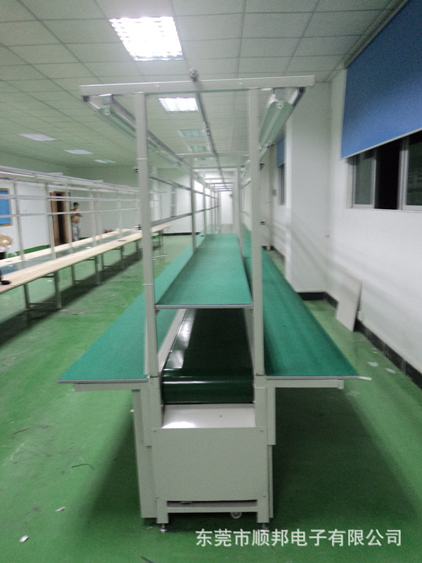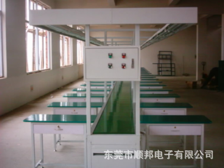 生产范围: 1:工作台:精益管工作台,铝型材工作桌 1.1铝型材结构和A包塑钢管,钢结构焊接等。 1.2 面板采用木板,PE板,密度板,防静电桌面。 2:皮带线 2.1 普通皮带流水线。 2.2 防静电皮带线。 2.3 铝型材机架。 3:生产组装流水线 3.1 倍速链。 3.2 链板线。 3.3 平顶链,以及一些特殊的运输链。 3.4 完成产品的组装,抽真空,测试的一些循环流水线。 3.5 小配件的返回线。 3.6 冲床及加工机械周边的一些辅助线。 3.7 动力滚筒和无动力滚筒线。 4:升降机 4.1 生产流水线的半成品或成品一层到二层,或二层到一层,或直接到仓库的出货装置。 4.2 载货运输升降机。 4.3 可采用普通马达或伺服马达的非标升降机。 4.4 流水线中的一些高低过度升降机,工装板的投入或返回升降机,均采用气缸或普通马达。 5:灯架工作台流水线、 此类输送线适合于装配,物料输送等用途,应用范围极广。线体规格及类型:可根据客户需要来设计制作线体配置有:日光灯,气管,工具挂钩,工艺卡,仪表台,工作台,插座等,可由客户随意选择配置。 设备价格合理,美观牢固,欢迎广大客户联系。 6:输送设备:非标输送机,皮带输送机、滚筒输送机、板链输送机、螺旋输送机、万向球/福莱轮输送机、插件线、差速链、塑料板链输送线、塑料链网输送线、龙骨链输送线、金属链板输送线、悬挂输送线、回转寿司线,转弯皮带线以及PLC控制系统提升机、流利架。 7:输送配件:电动滚筒、包胶滚筒、锥型滚筒、自由式滚筒、万向球、流利条、福莱轮、顶板链、平顶链、输送链、底脚、滚珠链