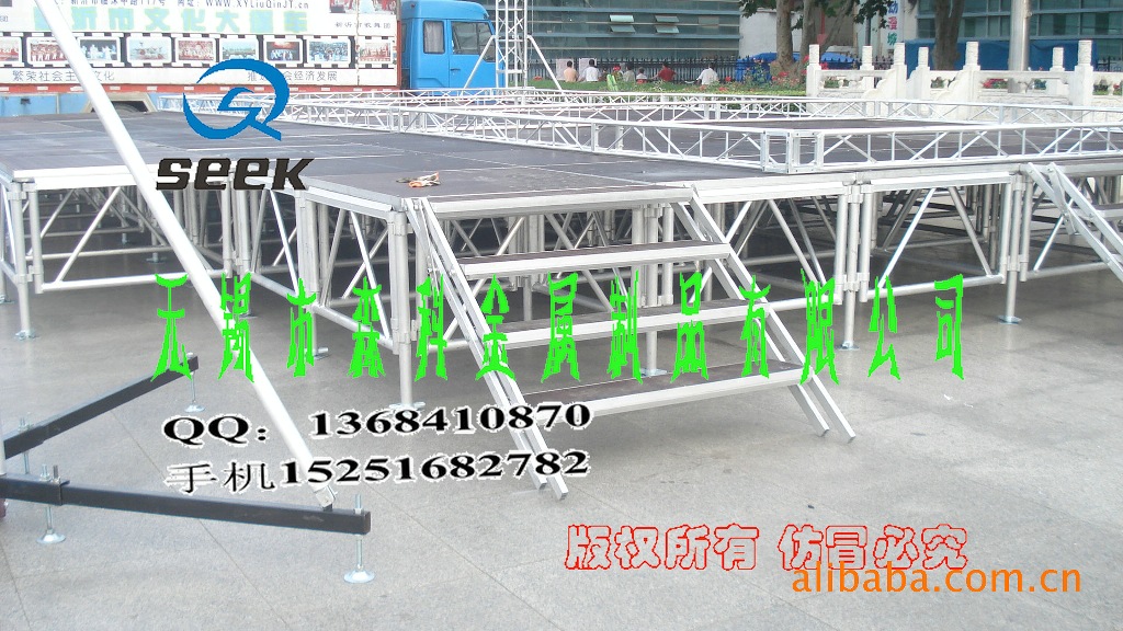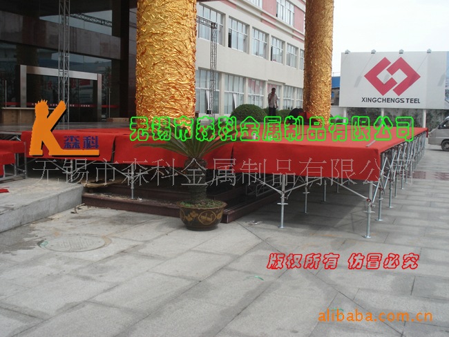 三、钢铁快装(专利)舞台:活动舞台,拼装舞台,快装舞台,可调节高度舞台,常规高度范围有:60公分-85公分、60公分-1.1米、85公分-1.1米、85公分-1.3米,常规规格:1.22m*1.22m/1.22m*2.44m ,亦可根据客户需要定做相关高度及舞台规格。