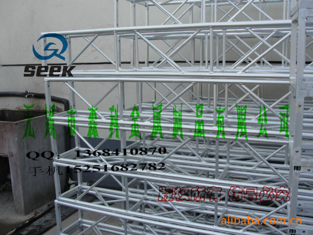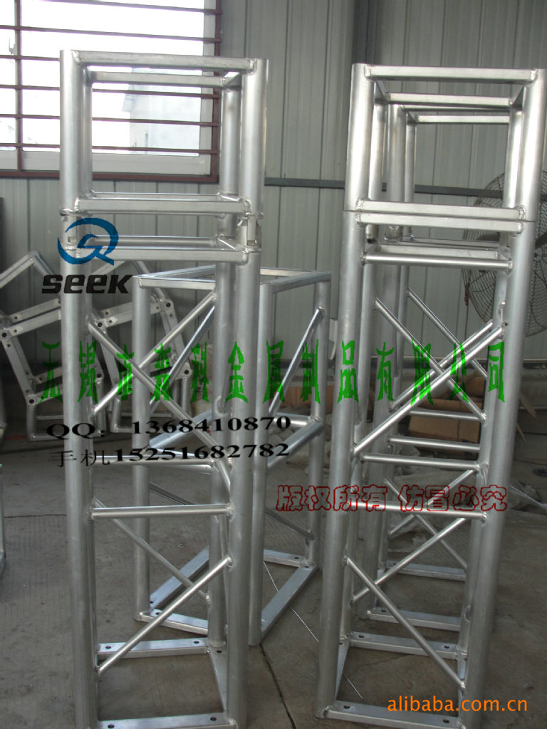 三、铝合金舞台灯架:单排架,三角架,圆架,四方架,常规长度有0.5m/1m/1.5m/1.6m/1.8m/2m/3m/4m;亦可根据客户需要定做相关尺寸。