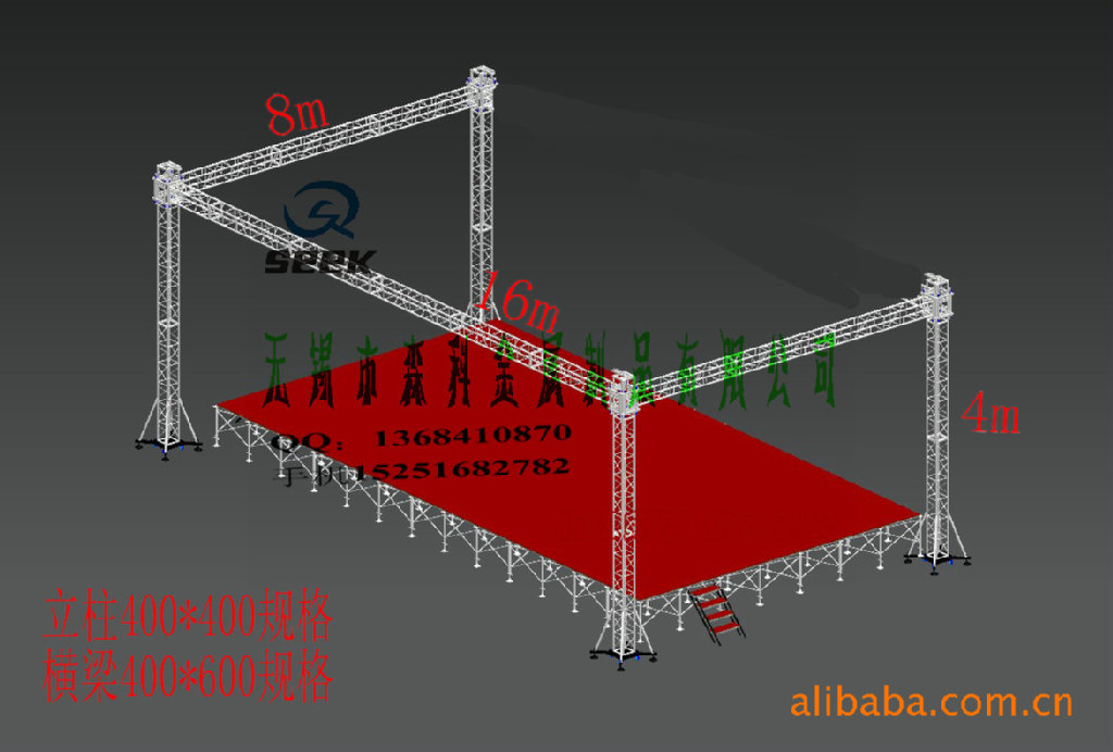 答:本公司是专业生产铝合金灯架,桁架,舞台(专利),铝合金舞台,折叠舞台,雷亚架,篷房,脚手架等系列产品的大型综合型实体公司,诚信经营。并且在工商局都可查到,在阿里巴巴也是诚信通会员,产品生产并出口各国,厂址位于无锡市锡山区东港镇阳光工业园,客户可以本人或委托朋友来工厂实地考察,建立信任。一直以来,国内浙江、上海、江苏、山东、福建、湖北、湖南、安徽、河南、陕西、广西、新疆等许多朋友均从本公司购得满意的产品。