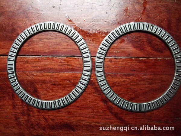 推力轴承由带滚针或圆柱滚子或滚珠的推力保持架组件和推力垫圈组成。滚针和圆柱滚子受到推力保持架的保持和引导。在与不同系列的推力轴承垫圈一起使用时,则可为轴承的配置提供许多不同的组合。由于选用高精度圆柱滚子(滚针)增加了接触长度,使得此轴承在很小的空间下可获得高载荷能力和高的刚度。另一优点是,如果相邻零件表面适于作滚道面时可省去垫圈,可使设计紧凑,推力滚针轴承和推力圆柱滚子轴承采用的滚针和圆柱滚子的圆柱面为修形面,可减少边缘应力,提高使用寿命。