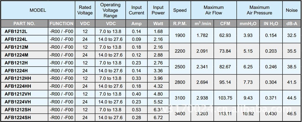 AFB1212L、AFB1224L、AFB1212M、AFB1224M、AFB1212H、AFB1224H、AFB1212HH、AFB1224HH、AFB1212VH 、AFB1224VH、AFB1212SH、AFB1224SH
