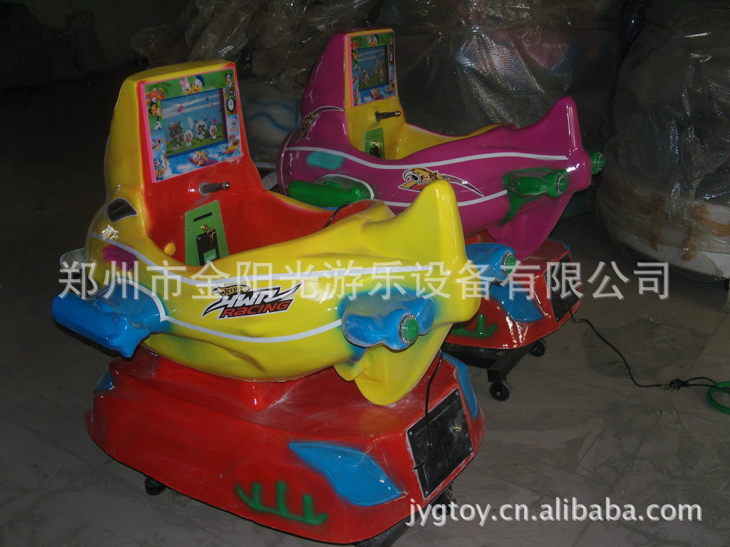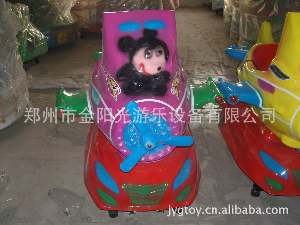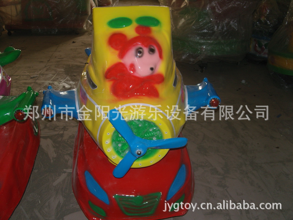 座舱离地面最大高度:1.35米 飞机玻璃厚度:5毫米升降旋转小飞机,儿童乘坐在飞机中,启动开关或者投币,飞机可以自动旋转,同时做匀速往复升降运动,伴随着优美动听的儿歌(可自行更换)及七彩灯光,令儿童留恋往返。播放器具有断电记忆播放功能,智能音乐无间断,自动循环播放,低失真,高品质,并设有计数功能,使管理更轻松、更方便。