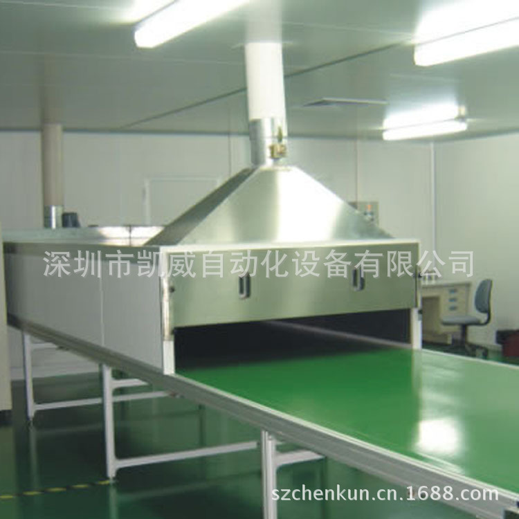 隧道炉生产线适用于各类物件浸湿后通过热风来烘干作业。线体采用不锈钢网带或PVC带运行,方式为直线上下循环封闭式。电能加热温控热风循环,功用于物件的烘干作业。