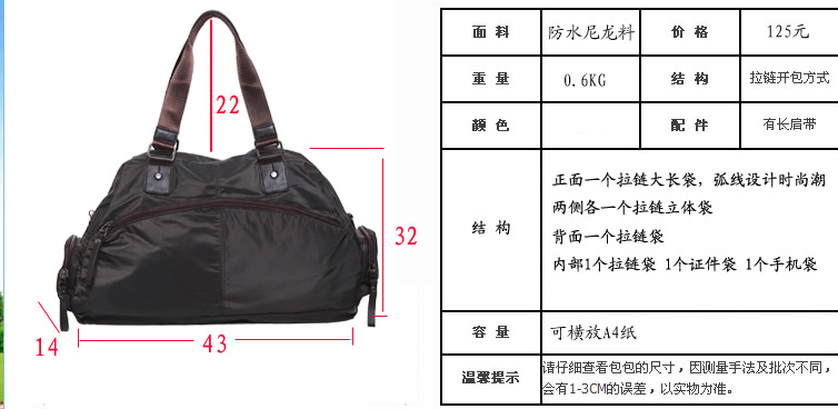 批发大容量旅游行李包 出差必备斜挎包 厂家低价订制