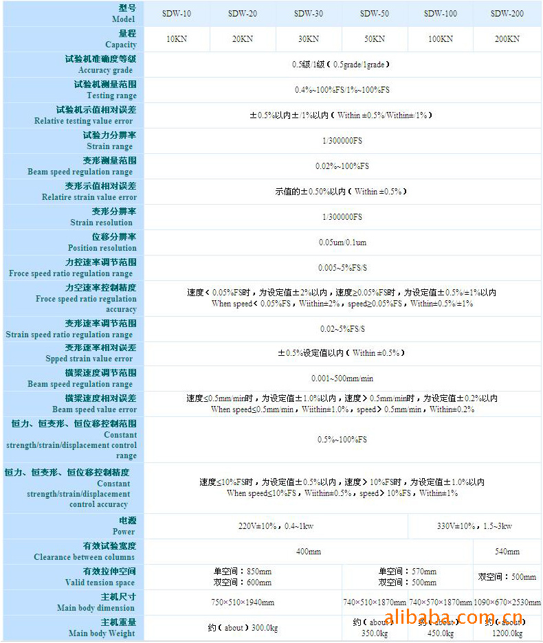 SDW系列微机控制电子万能试验机是电子技术与机械传动相结合的新型材料试验机,具有准确的加载速度和测力范围,对载荷、变形、位移的测量和控制有较高的精度和灵敏度。主要适用于金属、非金属试样的拉伸、压缩、弯曲、剪切等试验。