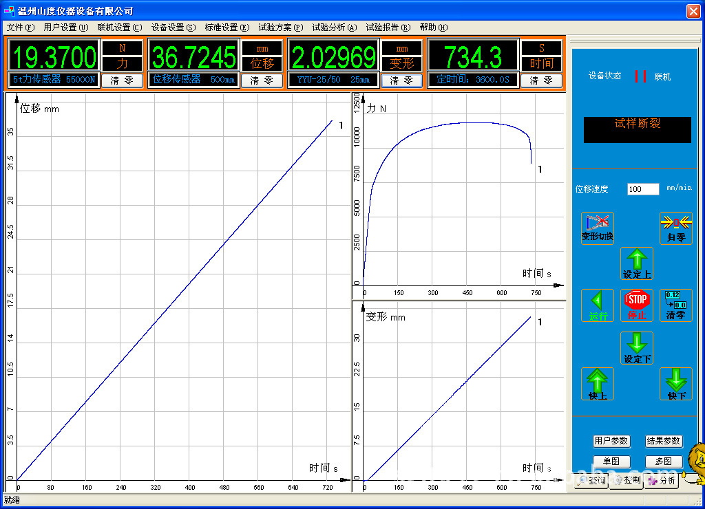 全中文的Windows平台下的试验软件,可即时打印试验报告和试验曲线;