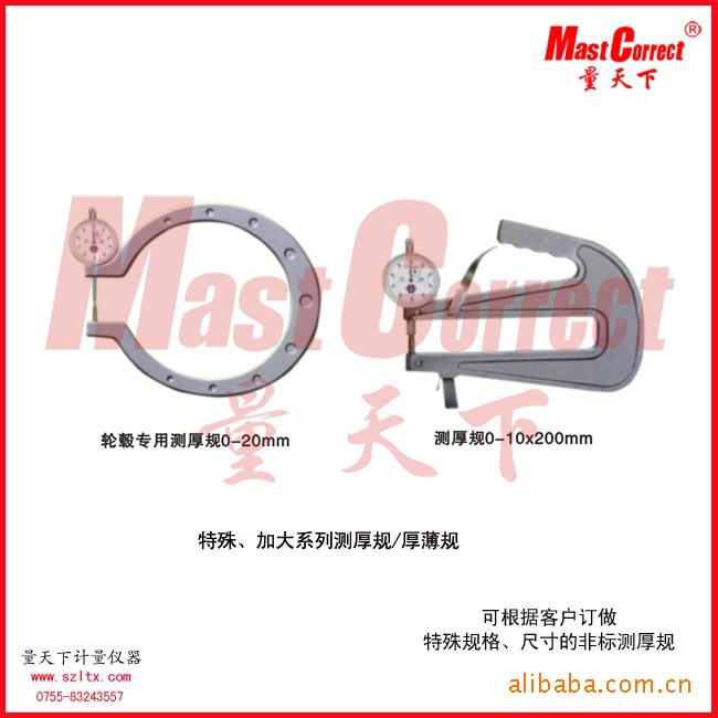 用于测量固定于表架上的百分表侧头测量面相对于表架测砧测量面的直线位移量(厚度),并由百分表进行读数的测量器具,又称厚度表、测厚规等等。