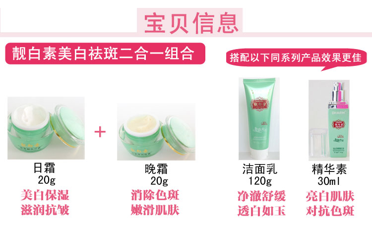 等配以VC高效美白精华,芦荟精华,保湿因子精制而成。