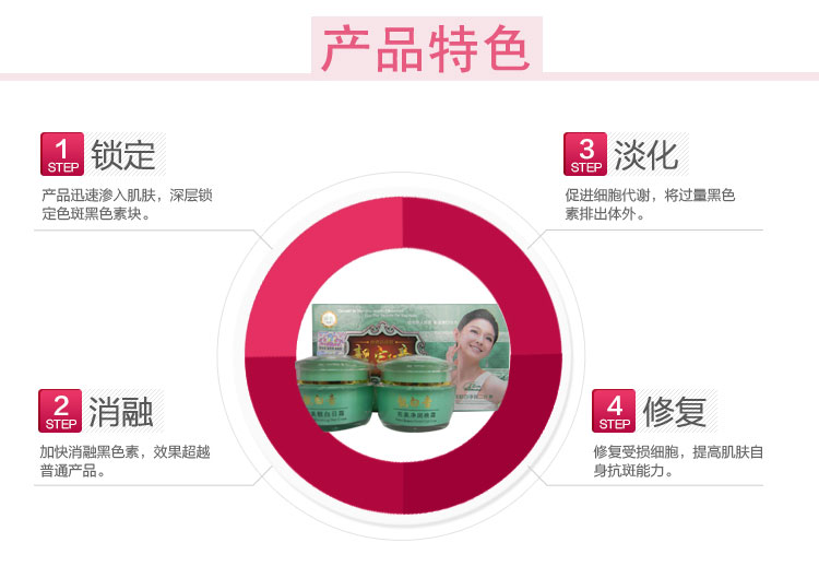本品根据古代传统中医的养颜秘方,采用十几种名贵中草药经现代高科技精制而成,能深层渗入情结肌肤,分解淡