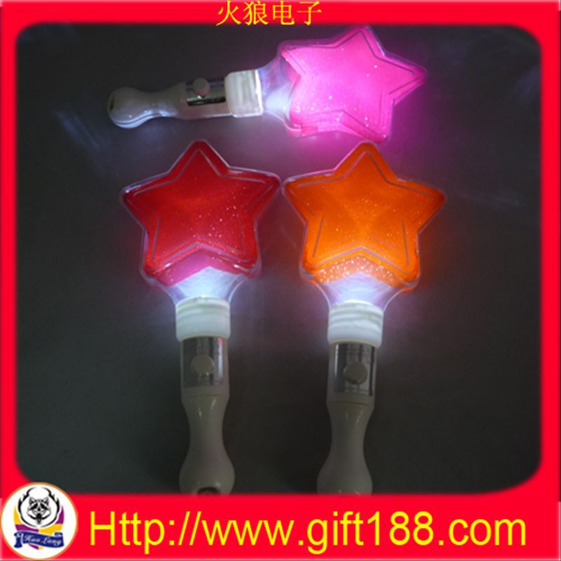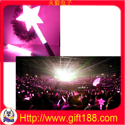LED星形发光棒,总长度为32CM,五角星的形状可以开成客人的,手柄处为PP材料,用AAA七号电池来供电,耐电量持久,,电池是易更换的,产品本身可以加印不同的客人LOGO,三档式开关,每按一下开关,闪灯方式都不一样的,是一款最适合演唱会用品之一。。。