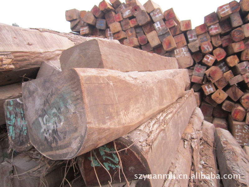 红贵宝原木、气干密度0.87-0.97、适合高级家具等。直径20-70厘米、长度2.5-7米