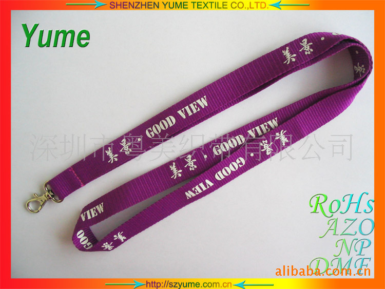 深圳市粤美织带有限公司有非常完善的挂绳生产流程和质检制度,从织带的生产,丝印,车缝,压马仔,打撞钉,组装一条龙全部搞定!确保做到价格最低!并且我们的每条挂绳成品都是经过全检的,就算1%的不良率我们也可以挑战!