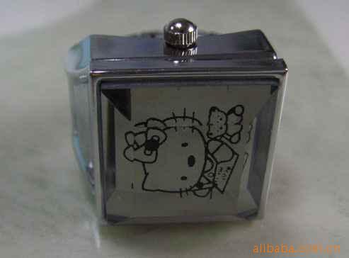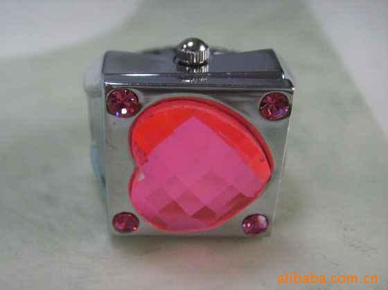 翻盖戒指手表:锌合金表壳,钢片表带,三针石英机芯,防水结构