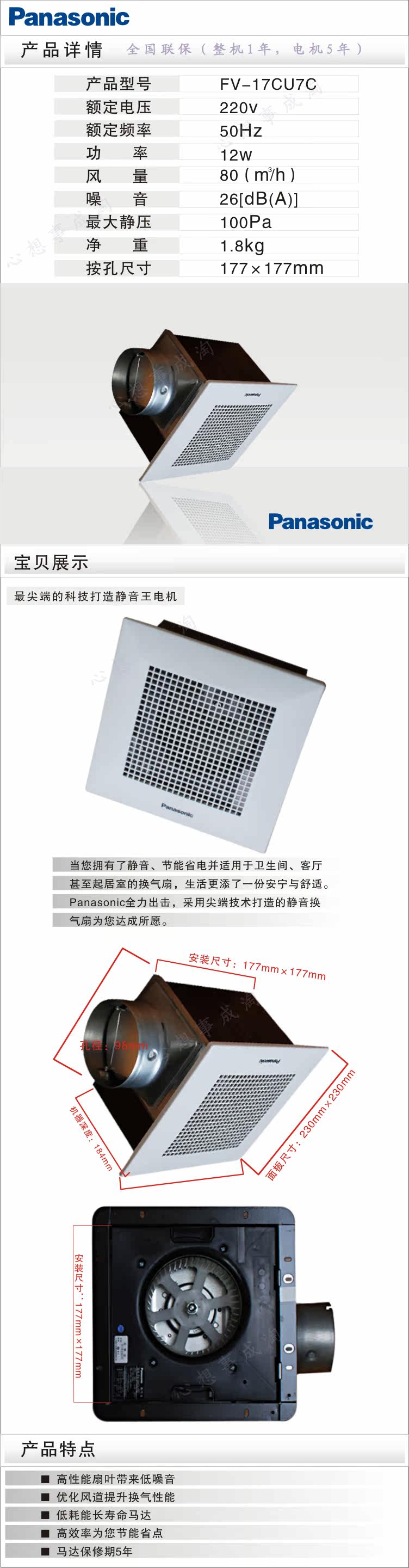 湖北松下排气扇/换气扇/天花管道FV-17CUV2C 正品+质保