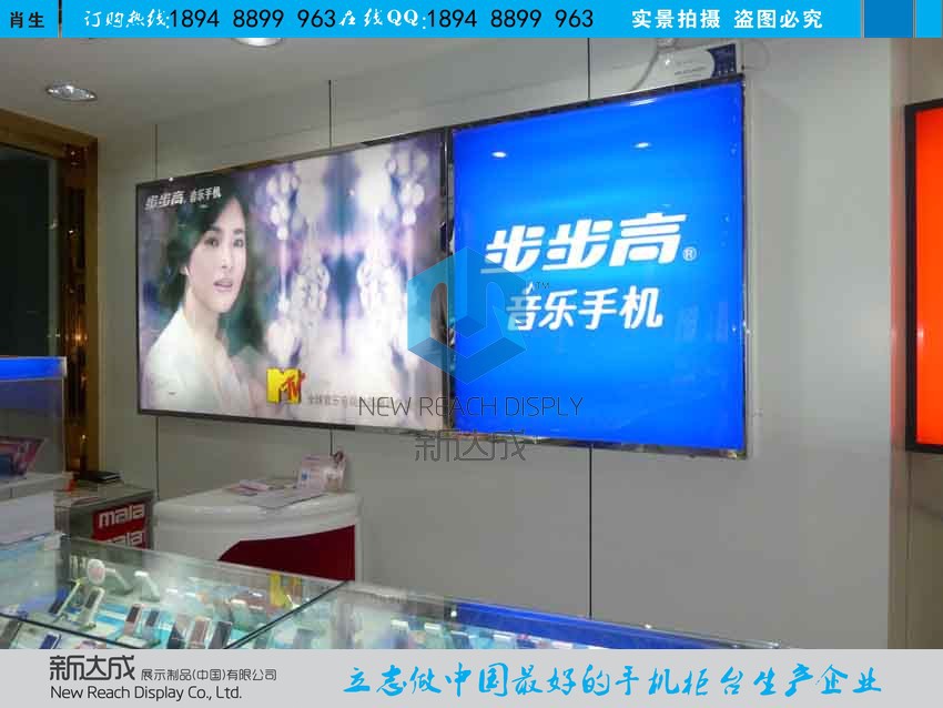 新达成展示目前提供的手机展示柜、智能体验柜、背景灯箱、亚克力托架、配件柜、收银台等产品已有八大类,数千种款式,完全可以满足各类客户对销售终端个性化、实用化等多方面需求。公司并可提供卖场、店面的整体规划、设计、制作、安装服务,专业而全面的一条龙服务让您省心又省力。