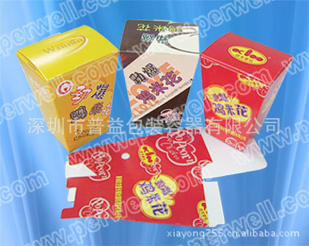 专业生产各款鸡(爆)米花盒、元保盒,可装鸡米花、辣子鸡等食品,可以根据客人提供规格或样板生产,可印刷图案。本公司产品保证无毒无公害,健康环保,符合国际食品卫生包装标准,质量保证。欢迎定购,欢迎来电咨询!