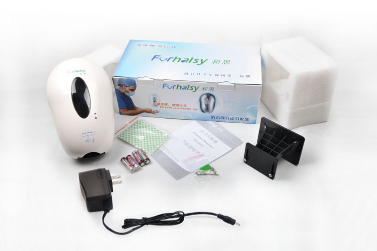 主要性能:1、消毒液识别功能:本设备只能适用本公司(或本公司授权)生产的消毒液产品。 2、感应给液功能:本设备只有在手位于能接到给出消毒液的位置才能出液,且一次感应只出液一次。最长感应距离为3.5英寸。3、出液量设定功能:本设备有两档出液量设定,一档液量为每感应一次,泡沫洗手液出液0.4ml。4、缺液提醒功能:本设备在消毒液快用完时,缺液指示灯会闪烁,提醒准备更换消毒液瓶。5、缺电提示功能:本设备在电池快用完时,电池指示灯会闪烁,提醒准备更换电池。6、故障保护机提示功能:本设备在出现故障时,故障指示灯会闪烁,提醒检查设备。7、数据统计功能:本设备在配备本公司的辅助设备能读出工作数据。以便统计。