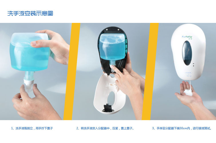 主要优势:①独创感应加泡沫式,非接触,避免交叉感染,安全可靠。②泡沫洗手液,用量更省(节省用量150%),杀菌更彻底,洗手更干净。③科技性能更强,感应灵敏快捷,不漏滴误滴。④泵机分离,避免其他同类产品泵坏机坏的缺陷;泵的出液次数在65万次以上,寿命是其他产品的10倍以上。⑤静音 防盗设计等。⑥性价比高。