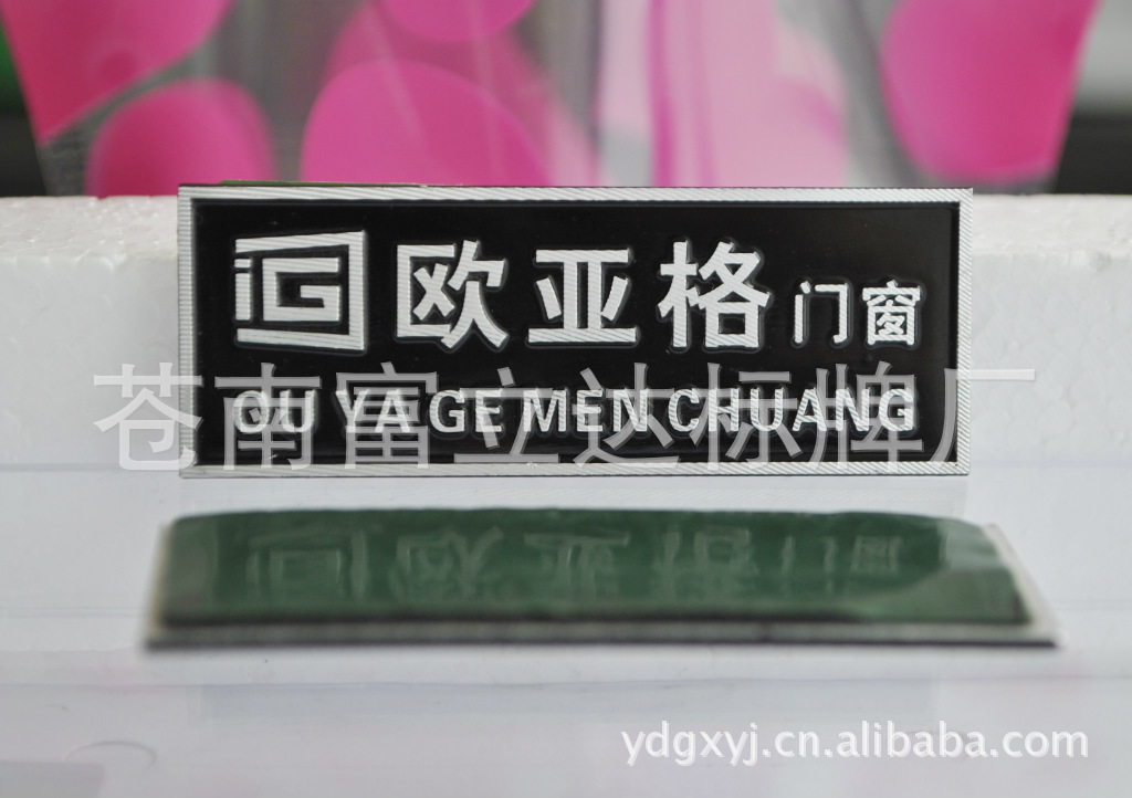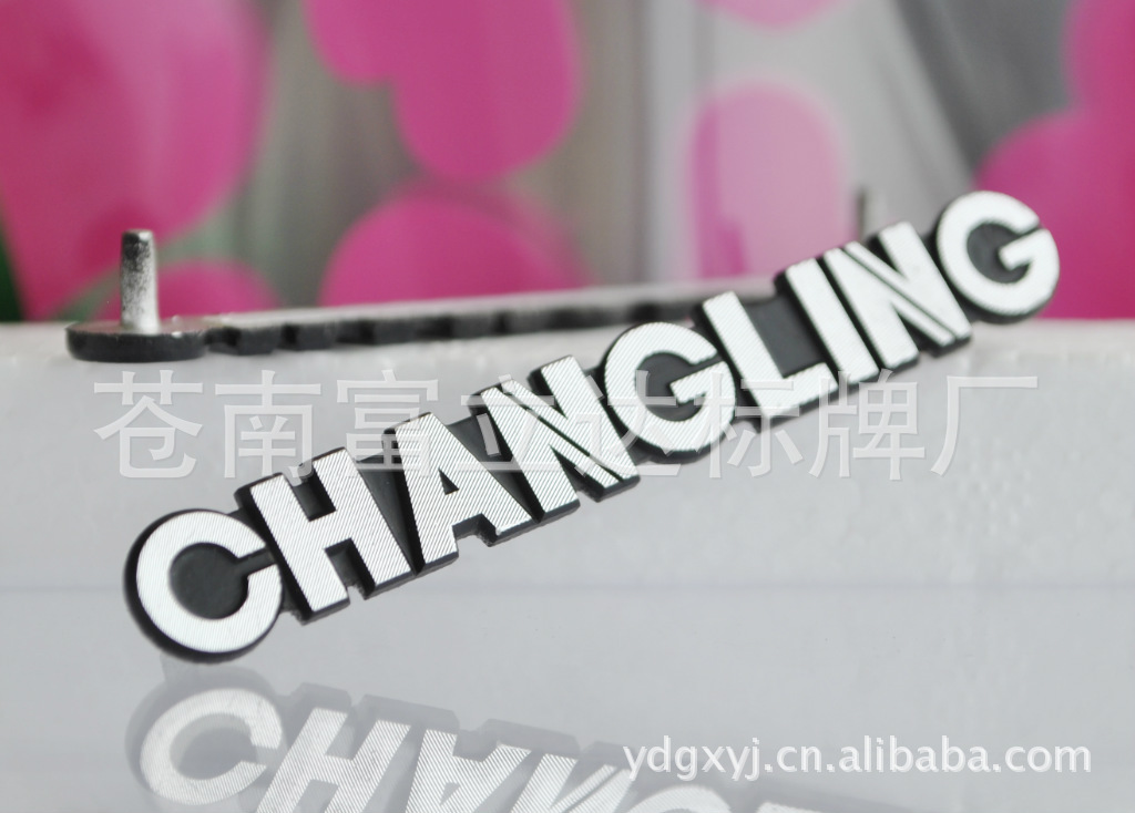 产品由铝冲压成型,洗白,背面可平面贴胶或带脚,喷漆高光拉丝而成。阳极氧化、着色,立体效果强,极具观赏性,保存时间长等特点。