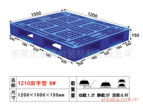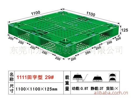 本公司塑胶卡板美观环保坚固耐用、高密度低压聚乙烯(HDPE)和聚丙烯(PP)生产、质量坚硬、化学稳定性很高、无毒无味、无钉无刺、耐酸碱、易清洗、不霉烂、不助燃、无静电、无火花、防爆、可回收等优点,塑胶卡板使用寿命是木托盘的5-7倍,是现代化运输、包装、仓储的重要工具,是国际上规定的用于食品、水产品、医药、化学品等包装器材的优选产品。本司有田字、川字、双面,九脚,七脚各系列规格60多种,产品四面进叉,动载静载量大,产品送货上门。