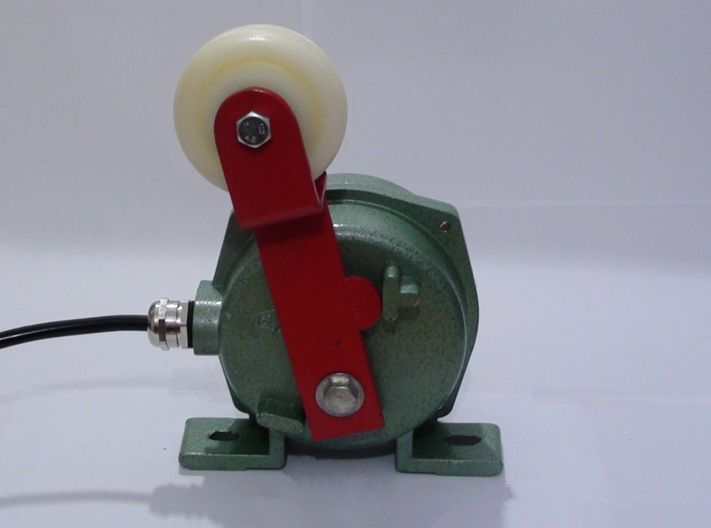 当运行中的胶带发生跑偏现象时,胶带边缘带动立棍旋转并挤压使之倾斜,若立棍倾斜角度大于一级动作角度时,开关发出一组开关信号,如立棍继续倾斜大于二级动作角度时则输出另一组开关信号。两组开关信号可分别用于告警或停机,胶带机复位正常运行后,立棍自动复位结构特性