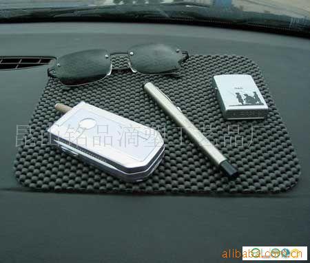 1、将汽车防滑垫置于汽车仪表台上,无粘性,不反光,不伤仪表台,具超强的吸附性,手机、笔、硬币,眼镜等任何物品放在上面,即使是急刹车或强烈震动也不会滑落。