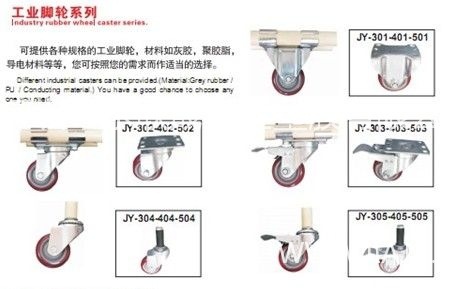 脚轮产品有橡胶材质,PU材质,PVC材质,有脚轮,万向轮,工业脚轮,重型脚轮,脚手架脚轮,日式脚轮等品种齐全的脚轮系列