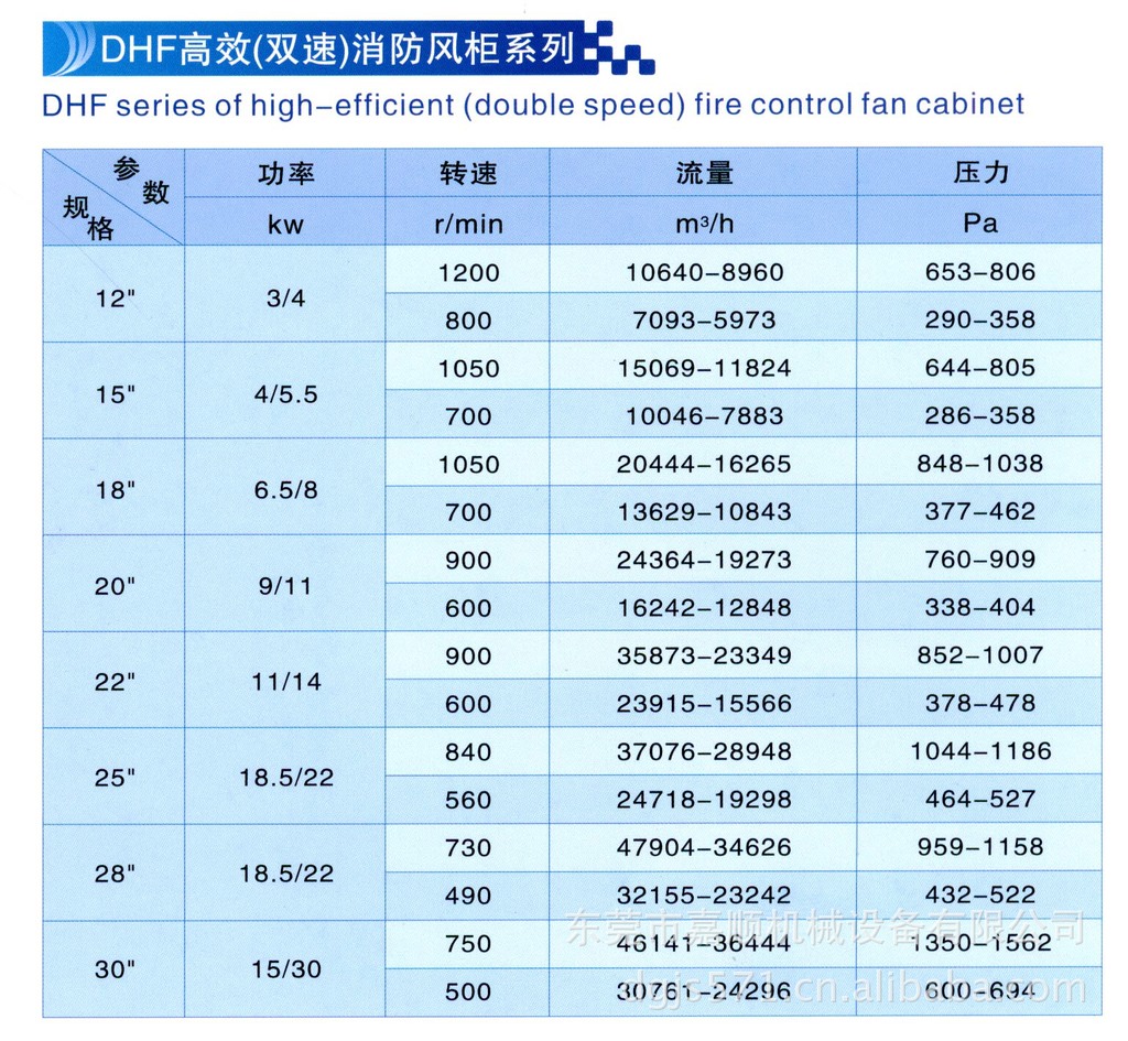 DHF-A型高效(双速)消防风柜。该风机箱体采用优质钢板折弯成可折装结构。表面经过喷涂处理,外表美观,配有高低转速两用电机,高速运转时可作消防排烟使用,底速运转时可作一搬通风换气用,根据安装位置不同可分为A型电机外置和B型电机内置两种,电机外置式为消防通风用,电机内置为通风用。此风机广泛使用于宾馆,体育馆,学校,酒楼,影剧院,礼堂,高级民用和