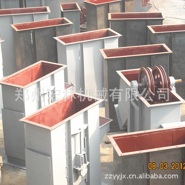 斗式提升机的主要结构: 1、 斗式提升机机首部件:它由上部机壳,主动轴部件,减速机、连轴器、电机等组装成一体。 2、斗式提升机中部机壳:根据需要提升的高度、配置不同数量的中部机壳迭加起来既能满足需要。 3、斗式提升机下部部件:它由底部机壳,从动轴部件及张紧装置结成一体。机壳侧面有门可以打开,对其内部进行检查如清扫。 4、斗式提升机链条及料斗:链条为圆钢焊接环链。料斗用螺母定在链条的接头上。不同高度的斗提机现套相应数量的链条、接头、及料斗。