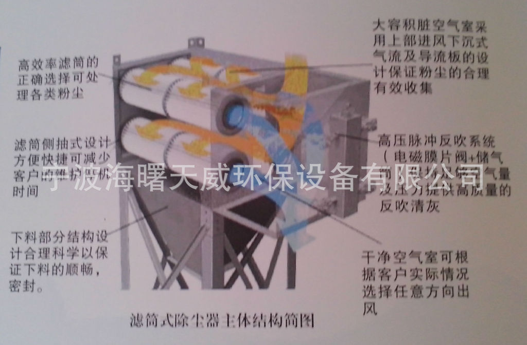 2、体积小,采用进口高性能覆膜滤筒作为滤单元,不同的粉尘使用不同的滤筒;