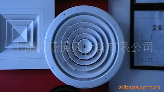 双层百页风口一般作为送风口,也可直接与风机盘管配套使用,广泛用于集中空调系统的末端,还可以与对开多叶调节阀,用以调整风量。 (2)单层百叶风口可调上下风向,回风口可与风口过滤网合用,节片角度可以调节,叶片间有ABS塑料固定支架。固定式过滤网在清洗时可由滑道上取出过滤网,清洗后再从滑道推入后继续使用。 (3)固定条形风口用在供热及供冷的空调系统中,可安装在侧墙上或天花板上。 (4)自垂百叶式风口具有正压的空调房间自动排气。通常情况下靠风口的百叶自重而自然下垂,隔绝室内外的空气交换,当室内气压大于室外气压时,气流将百叶吹开而向外排气,反之室内气压小于室外气压时,气流不能反向流入室内,该风口有单向止回作用。 (5)散流器是空调系统中常用的送风口、具有均匀散流特性及简洁美观的外形,可根据使用要求制成正方形或长方形,能配合任何天花板的装修要求。散流器的内芯部分可从外框拆离,方便安装及清洗。后面可配风口调节阀以控制调整风量。适用于播音室、医院、剧场、教室、音乐厅、图书馆、游艺厅、剧场休息厅、一般办公室、商店、旅馆、饭店、及体育馆等。为了使人们在各种环境里避免噪音的干扰以及不适感,除了按性能表确定颈部风速外, 还需要考虑安装高度及安装场合。 (6)球形可调风口是一种喷口型送风口,高速气流在经过阀体喷口中对指定方向送风,气流喷射方向可在顶角为35°的圆锥形空间内前后左右方便地调节,气体流量也可通过阀门开合程度来调节。造用于高大层顶高速送风或局部供冷的场合,如机场候机大厅,室内体育场,宾馆厨房等场合 (7)旋流风口送出旋转射流,具有诱导比大,风速衰减快的特点,在空调通风系统中可用作大风量,大温差送风以减少风口数量,安装在天花板或顶棚上,可用于3米以内低空间,也可用二种高度大面积送风,高度甚至可达10米以上。