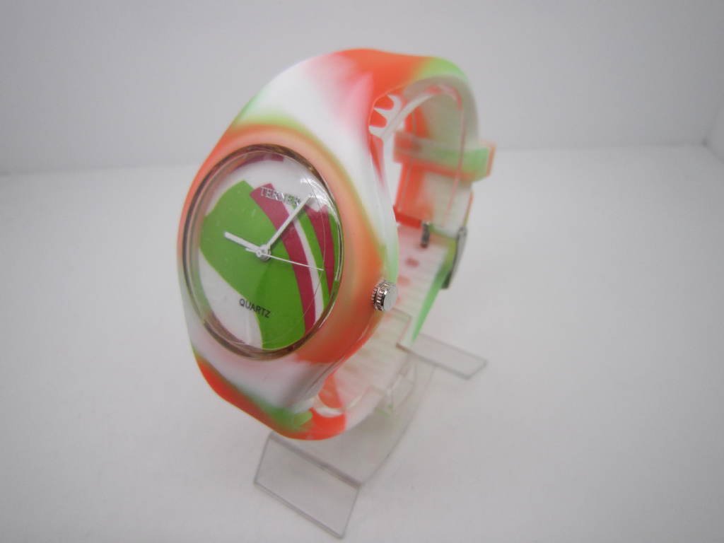 材质:塑胶表壳、硅胶表带,国产三针机芯,防水结构,